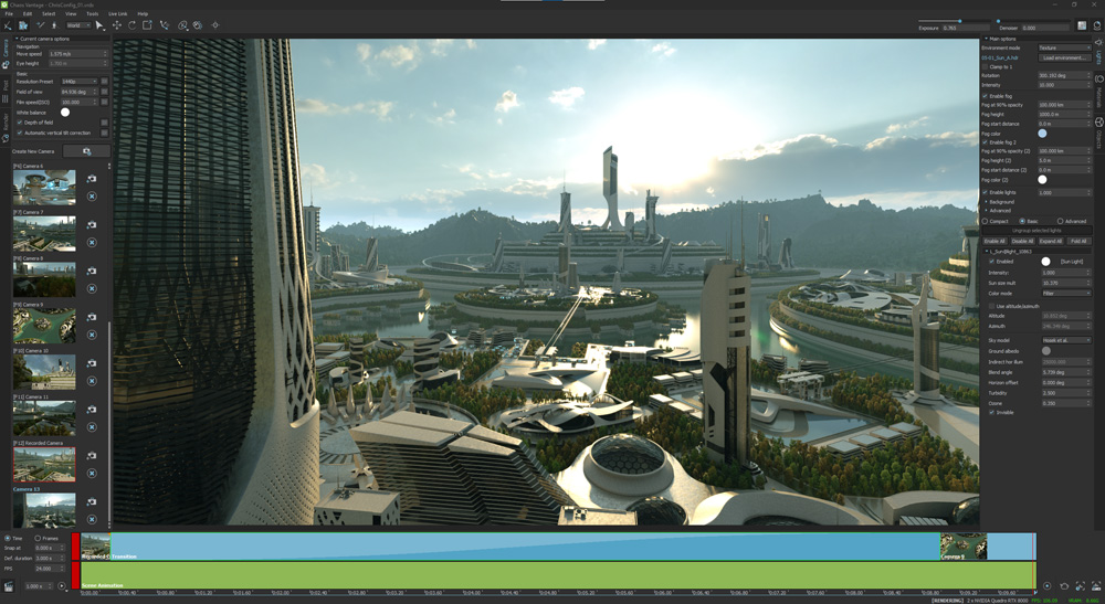 Vantage also includes an Animation Editor that can create, edit and render animated sequences for presentations or previsualization purposes, using a simple transition-based method. Alternatively, the ‘Record Camera’ feature allows a real-time session to be recorded as an MP4 video.