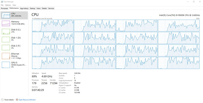 ■ Intel Core i9 9900K CPU (3.6GHz, 5.0GHz Turbo) (8C, 16T)