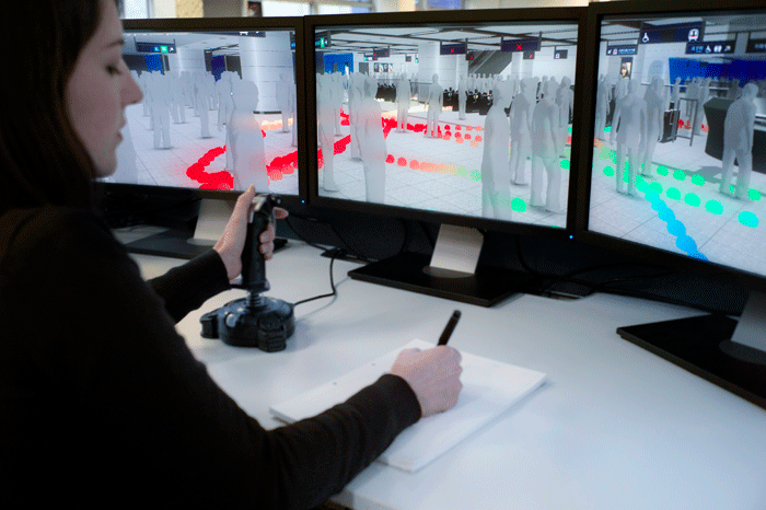 The system allows designers to try security camera positions and signage of different colours, sizes, translations and symbols in proposed as well as in existing public buildings. These are then tested by the public in real time and the results collated and informed improvements made to the proposed facility layout.