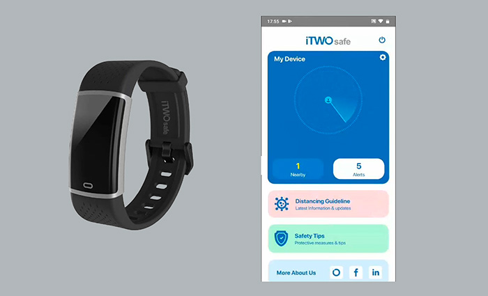 iTWOsafe is a new ‘smart distancing’ technology that can help maintain social distancing on construction sites or in offices. The technology monitors and tracks physical distancing using a smartphone app and a light-weight Bluetooth Low Energy (BLE) device, which comes in the form of a wristband or clothing tag.