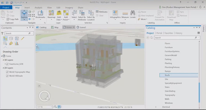 Unexpectedly, at Esri’s London User meeting, Robin Appleby, a consultant at Esri gave a demonstration of the unreleased development work with Autodesk that has been done to date. In the next release, ArcGIS pro will feature the ability to read Revit files directly, understand the data structure and bring the geometry and data, natively into ArcGIS Pro.