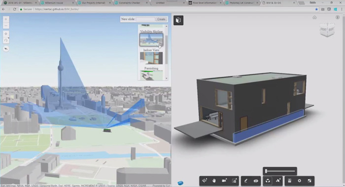 Appleby also gave a live demonstration of an integration of an ArcGIS web scene and Autodesk BIM 360, bringing through a model of a building into a city model and then carrying out shadow analysis. Esri is integrating not just at the desktop level but also with Autodesk’s cloud-backbone.