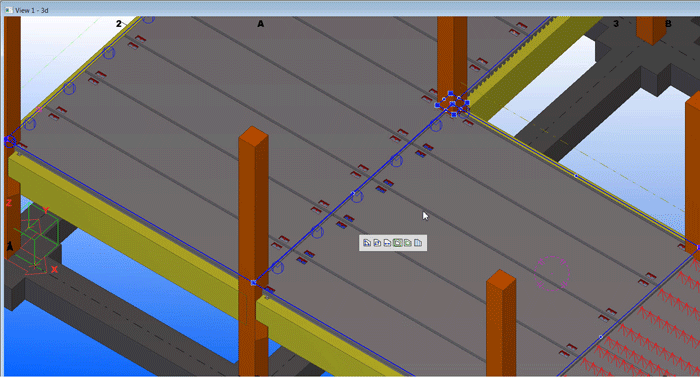 Users can pull faces around and change the size and location of objects by clicking on handles. It is great when working with reference files, as users can quickly model concrete or steel objects then pull and snap them into position. Grid lines can also be edited in the same way.