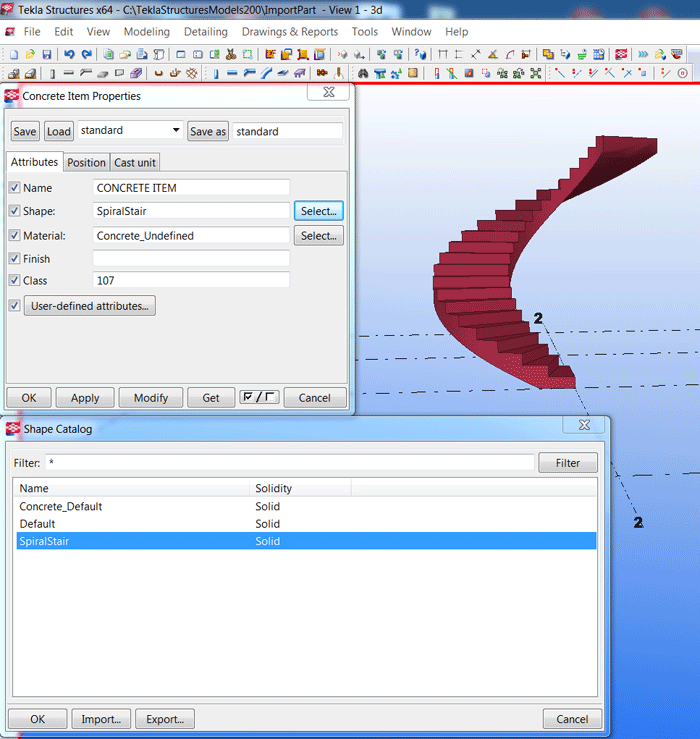 Objects are not parametric but can be complex B-rep models. Once inside Tekla Structures they can be assigned class, materials and other attributes, such as weight, an order code or a link to a website.