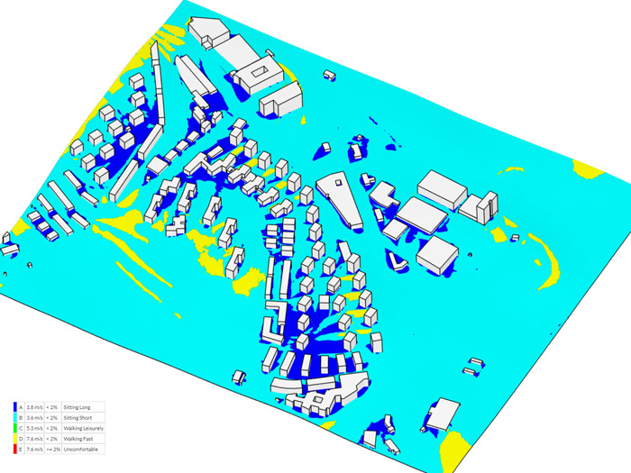 By assessing pedestrian wind comfort, urban master planners, civil engineers and architects can predict the behaviour of wind flow around buildings while they are in the design phase. Wind speeds and other parameters can be calculated at pedestrian levels, and comfort can be assessed based on given criteria. This allows for changes and improvements to be directly implemented into the design and iterated until the best version is created.
