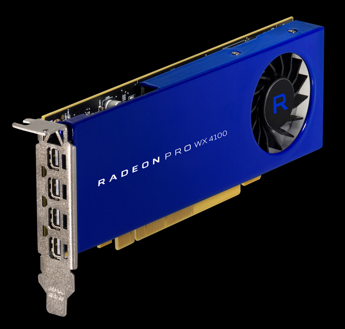 The AMD Radeon Pro WX4100 (4GB GDDR5 memory) will be AMD’s key GPU for 3D CAD and will retail for $399. Available in a low profile form factor, it will be compatible with standard tower and Small Form Factor (SFF) workstations.