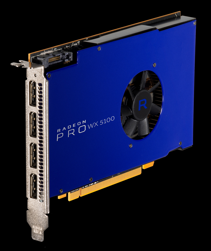 The AMD Radeon Pro WX5100 also has 8GB GDDR5 memory but is focused on high-end 3D CAD and interactive design viz using game engines. It will retail for $499.