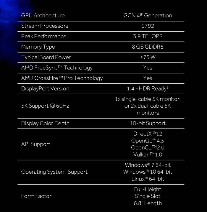 The AMD Radeon Pro WX 7100 is not the only member of the new Radeon Pro WX family, which replaces FirePro as AMD’s professional GPU brand.