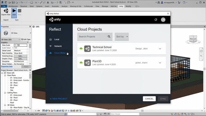 A new Unity Reflect Dashboard allows users to monitor export progress and manage projects and servers. It can also be used to delete specific models (sources) from a Reflect project.