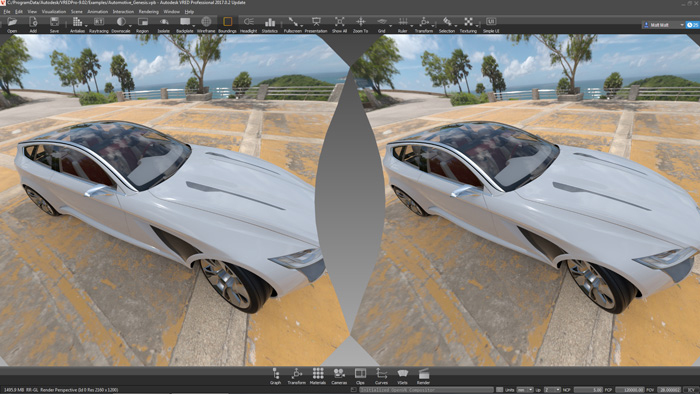 The advanced design viz application Autodesk VRED Professional 2017, for example, literally devours all the GPU power you can throw at it, through intensive use of anti-aliasing and advanced OpenGL functions, such as ambient occlusion shadows. Materials, especially car paint and glass, are rendered beautifully in real time.
