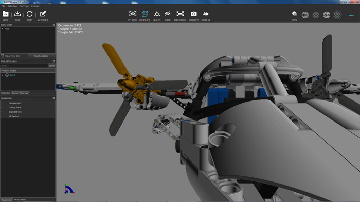 For another change of application, we looked at a beta of a new VR-capable CAD file viewer called PiXYZ Review. Here, we managed to get decent performance even with a 13 million triangle factory model, although the default render quality was not as good as in VRED.