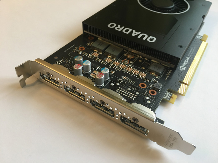 At 75W, the card can draw all the power it needs over the PCIe bus. It features 5GB of GDDR5 memory, which is a small step up from its predecessor, the Quadro M2000 (4GB). Like the Quadro P4000 it features four DisplayPort 1.4 connectors and can support up to four 4K (4,096 x 2,160) displays at 120Hz or up to four 5K (5,120 x 2,880) displays at 60Hz.
