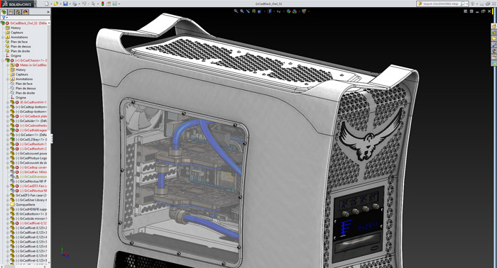 SolidWorks also features more realistic display styles for viewing models in real time. SolidWorks RealView adds realistic materials and supports environment reflections and floor shadows. Ambient Occlusion adds more realistic shadows and helps bring out details.