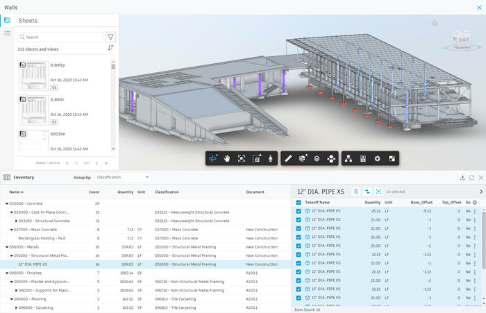 Quantify does what you would expect and enables estimators to automate 2D and 3D quantification from BIM models in a single platform. Features include: 2D take-off count and area take-off, together with automated 3D take-off from BIM components. The platform supports predefined or custom classification systems with customised formulas. Built-in document version control provides notifications of changes to models or drawings.
