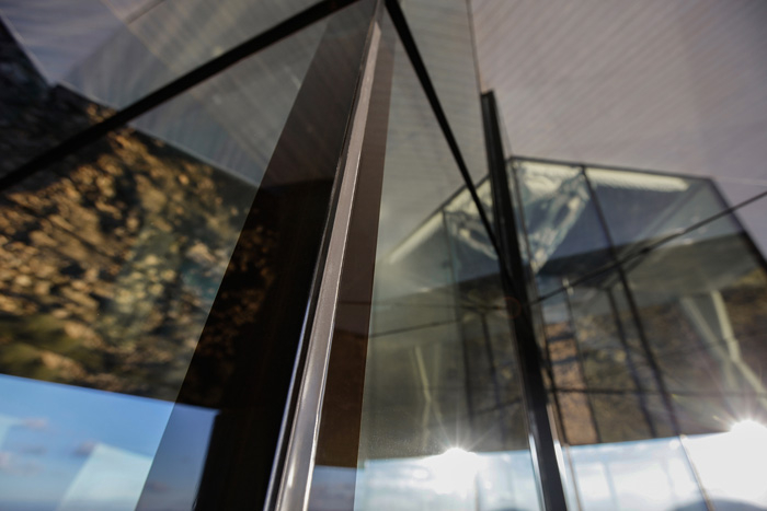Thermal performance was obviously essential because of the harsh environment but not at the expense of aesthetics. Videcnik wanted occupants to have a clear view of the beautiful surroundings and plenty of natural light indoors by keeping the glass as transparent as possible.
