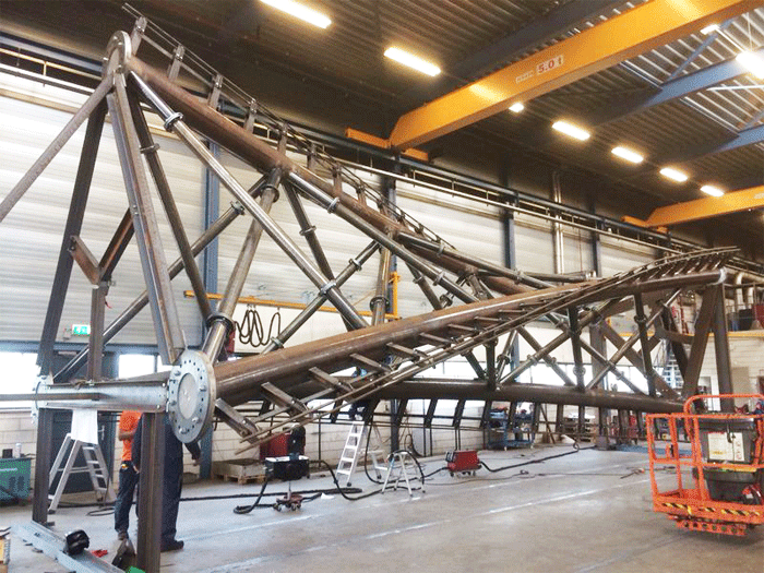 This spectacular 30m tower structure at the Chemelot campus in the south of The Netherlands was designed as a focal point for a community of chemical industry related companies. Two large LED screens located at the top of the tower are used to communicate events.