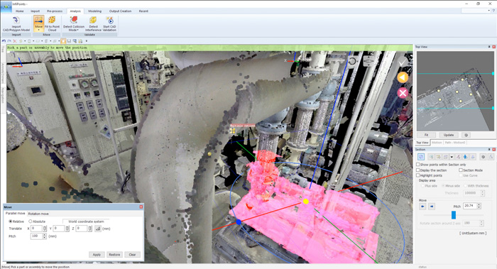 Alongside the use cases we have already discussed, there’s another area in which InfiPoints has some interesting tools and capability. In addition to the standard measurement tools, you’re also able to conduct collision detection within your point cloud data, which is useful for a couple of workflows. Imagine, for example, you need to shift a large item of plant out of your factory or move it to another position in order to reconfigure your production line. InfiPoints allows you to quickly identify the geometry relating to that piece of plant and use this as the basis for collision detection.