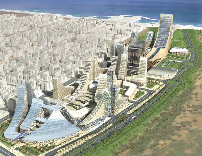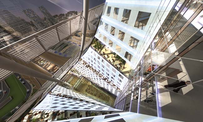 This proposal for a futuristic self contained city, located in Fahaheel just outside of Kuwait City, incorporates just about every bit of infrastructure you could dream of, ranging from hotels, retail, and residential units, to leisure facilities, hospitals and educational establishments. The pioneering 32-storey design, which pushes the boundaries of modernism, also features an undercover walkway designed with new technology to keep temperature cool and stretches from one side of the city to the other.