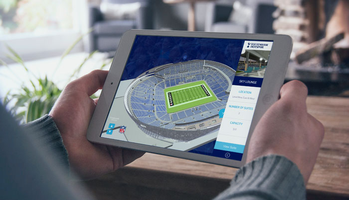 The primary set of apps focused on providing easy access to the interactive stadium model and a complete set of high-quality 360-degree CG views of the premium hospitality spaces.