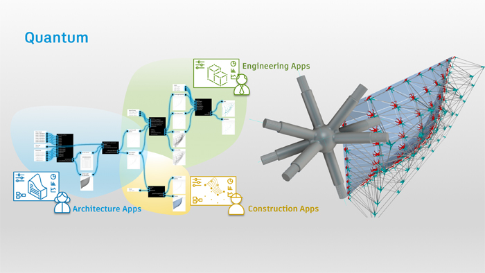 “We imagine a Quantum ecosystem to be more decoupled, giving each discipline the freedom to choose the tool of their choice for modelling their specific part of the building. So, as an example: the façade designer may use Dynamo or Grasshopper as their main authoring tool; the architect may use something like Revit; and the structural engineer may use a brand-new, web-based authoring tool. Each one is responsible for the parametrics of their own system and there should not be any conflict. But of course, what happens when those systems have to coordinate? Our theory is that having them interact and communicate via the interface points that we discussed earlier is beneficial in several ways.