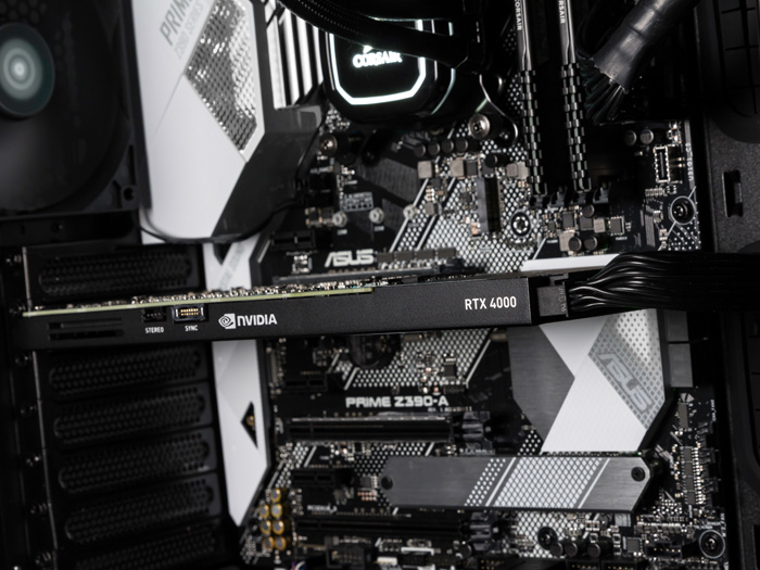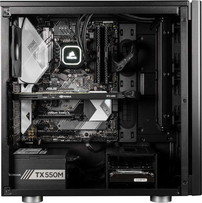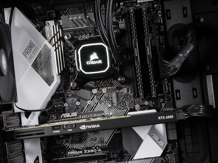 One of the nice features of the Asus Prime Z390-A motherboard is that it can support up to three PCIe x 16 GPUs, so if you really want to go hard on GPU rendering, simply add a couple of additional Quadro RTX 4000 GPUs, which cost £835 a piece. This configuration, however would need a more powerful PSU as the Corsair TX550M 80-Plus Gold is only rated at 550W.