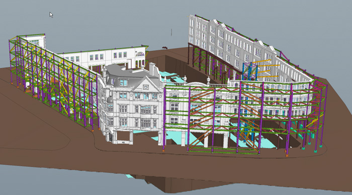 Due to the complex nature of the project and the numerous site constraints, the Wentworth House Partnership (WHP), an engineering design consultancy, used Tekla Structural Designer to design and detail the façade retention scheme.
