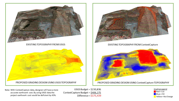 Complementary applications such as SITEOPS can run optimisation algorithms on the mesh, to provide the best orientation and layout of buildings and roads. Cut and fill requirements for grading can also be explored accurately, very early on, helping reduce risk when budgeting for construction.
