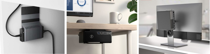The 3240 can be VESA mounted under the desk, without losing access to any of its ports, and also fitted behind select stands and monitors.