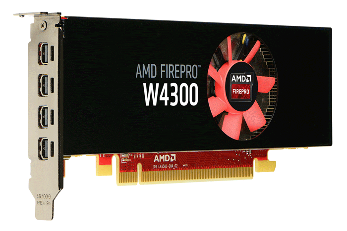 AMD has now upped the ante with the launch of the AMD FirePro W4300, a 4GB low profile GPU that delivers virtually the same graphics horsepower as AMD’s midrange offering, the FirePro W5100.
