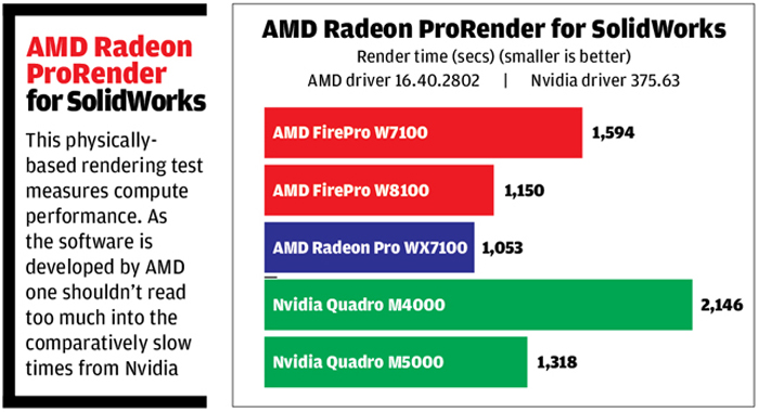 We had a few hiccups when testing with SolidWorks 2015, insofar as our SPECapc for SolidWorks benchmark crashed during most runs. AMD told us that this was down to a known issue with the Radeon Pro 16.40 driver and anti-aliasing in SolidWorks, which will be remedied soon with a new driver.