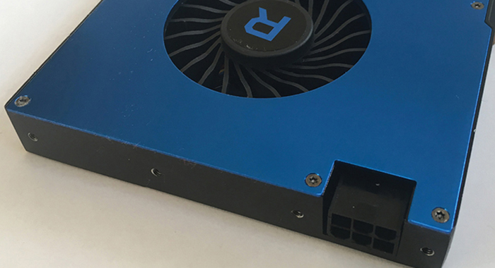 Single slot also means lower power consumption. The Radeon Pro WX7100 is rated at less than 130W and only needs one auxiliary 6-pin power connector, which comes straight from the workstation’s Power Supply Unit (PSU).