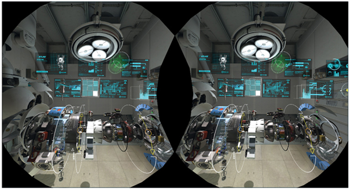VRMark has two tests. The ‘Orange Room’ is designed to test readiness for current VR headsets and renders at 2,264 × 1,348 resolution (1,132 x 1,348 per eye). This is slightly higher than the native display resolution of the HTC Vive and the Oculus Rift (1,080 × 1,200 per eye) and is due to distortion correction.